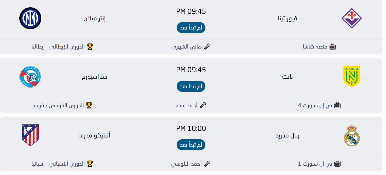 – نانت × ستراسبورج – الساعة 09:45 مساءً