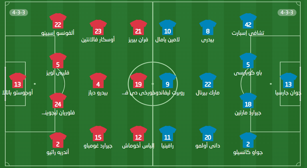 التشكيلة الرسمية تؤكد أن المباراة لن تكون سهلة، وأن برشلونة يدخل اللقاء بنية واضحة لحسمه، بينما يملك رايو فاييكانو الأدوات اللازمة لصناعة المفاجأة.