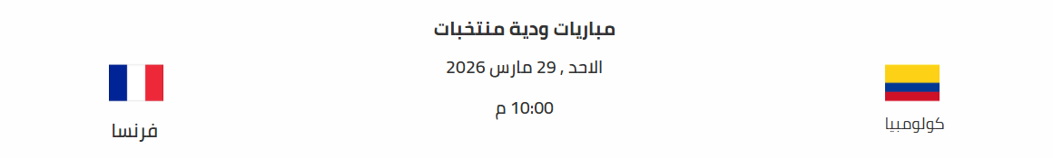 حُدد موعد مباراة فرنسا وكولومبيا يوم الأحد المقبل، الموافق 29 مارس 2026،