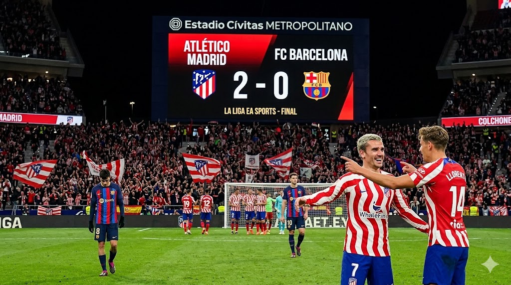 انتهت قمة الدوري الإسباني بين برشلونة وأتلتيكو مدريد بفوز مثير للروخي بلانكوس بنتيجة (0-2). شهدت المباراة تحولاً دراماتيكياً بطرد مدافع برشلونة باو كوبارسي، مما مهد الطريق لكتيبة سيميوني لخطف نقاط المباراة كاملة عبر جوليان ألفاريز وسورلوث.